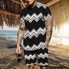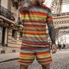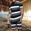 Vintage Casual Clothes Outfits For Men Print Striped Loose T Shirt Suit Oversized O Neck Summer Tracksuit Streetwear Men's Set