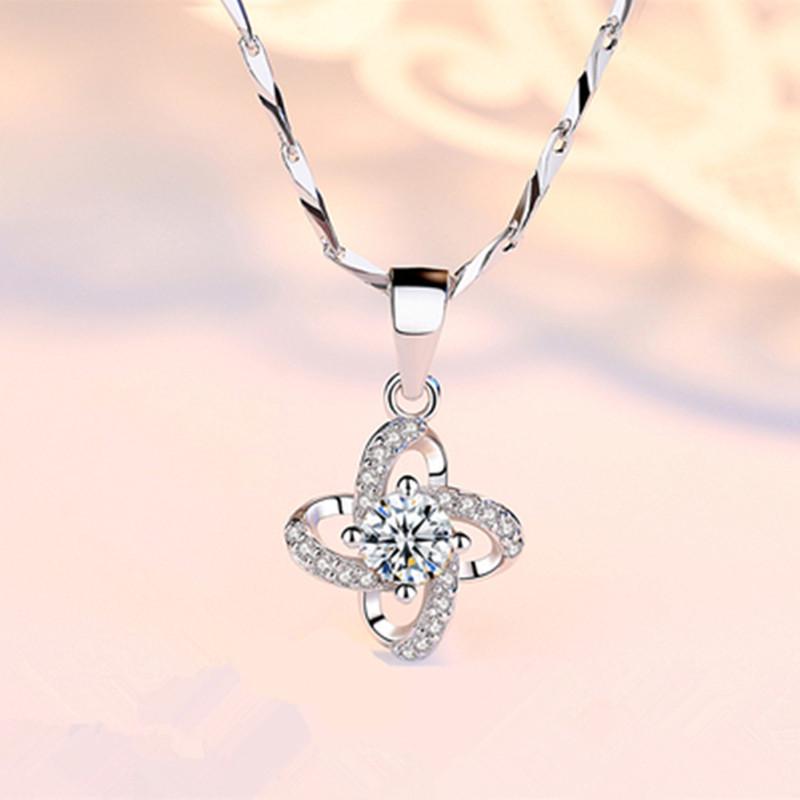 Fashion Four-Leaf Clover Imitation Moissanite Diamond Pendant Necklace