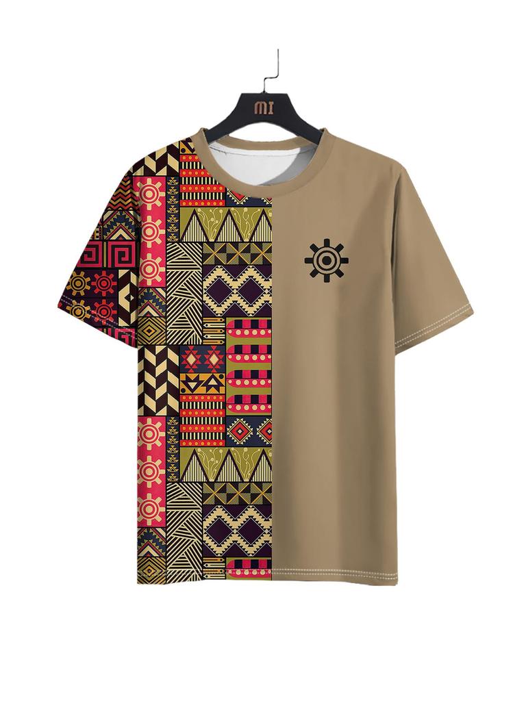 Vintage Ethnic Style Pattern Printed Men's T-Shirt Outdoor Casual Round Neck Short-Sleeved Tops Street Male Oversized Clothing