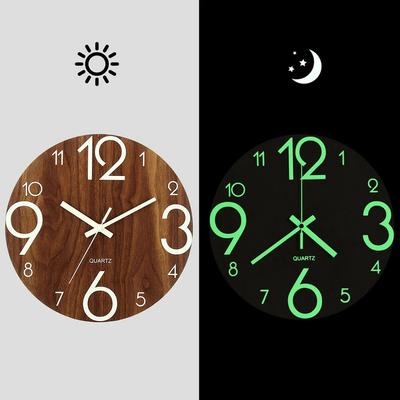 Luminous Wall Clock 12 Inch Wooden Silent Non-Ticking Kitchen Wall Clocks With Night Lights For Indoor/Outdoor Living Room Bed
