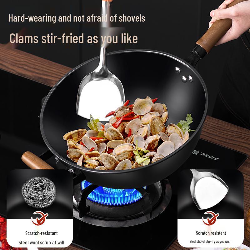 Vintage Non-Stick Cast Iron Skillet Wok for Gas Stove & Induction Cookers