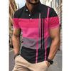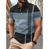Summer Men's Daily Casual Stripe Printed Lapel Short Sleeve Polo Shirt Top