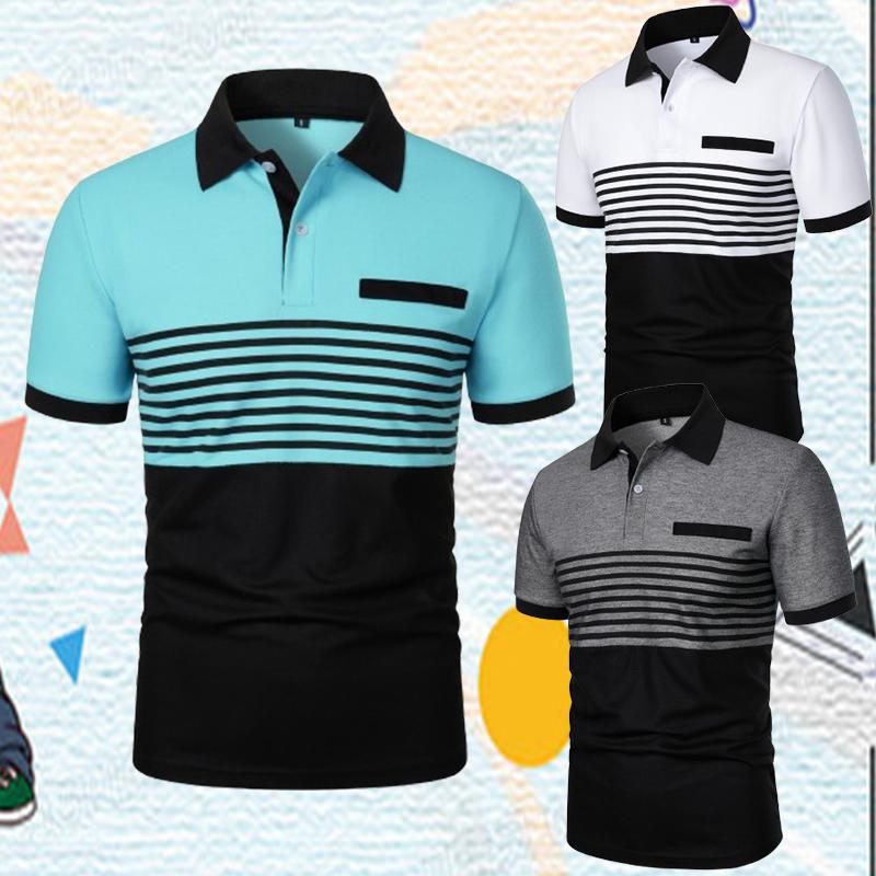 High End Men's Top Spring Summer Short Sleeved Casual Sports Comfortable Loose Breathable Stripe Contrasting Color T-shirt Polo Shirt Yasheng