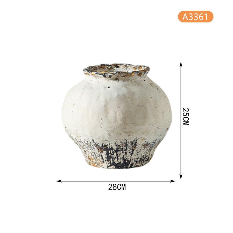 Rustic White Distressed Zen Pottery Jar for Dried Flowers - Chinese Style Vase Ornament for Home or Hotel Decor