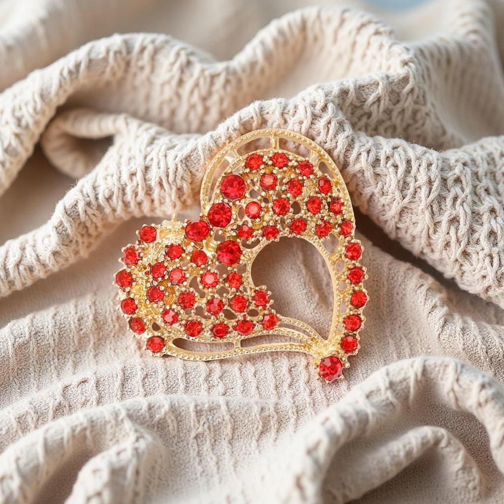 Korean-Style Rhinestone Heart Brooch: Elegant Women's Cardigan Accessory