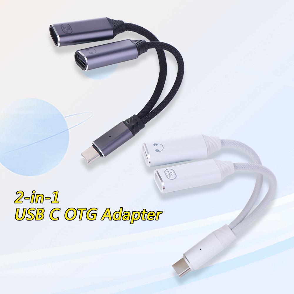 2 In 1 Design Type C Splitter Audio Cable 2-in-1 Headphone Adapter Cable Phone Charging