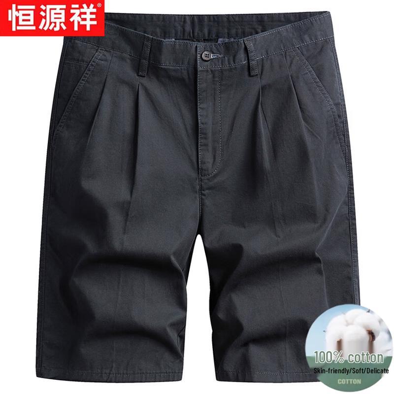 Hengyuanxiang Men's 100% Cotton Casual Knee-Length Shorts