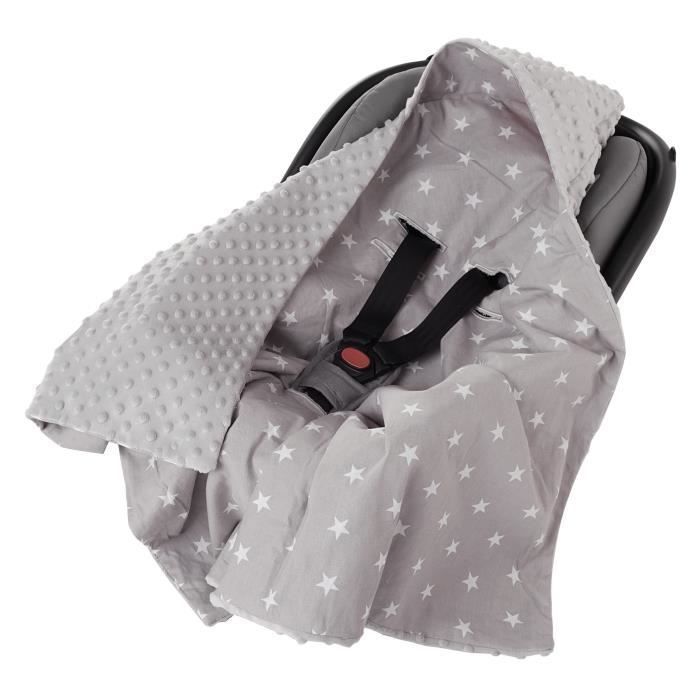 Medi Partners Couverture siège pour auto 100% Coton 85x85cm Couverture Douillette pour Poussette (Étoiles Blanches et Minky Gris