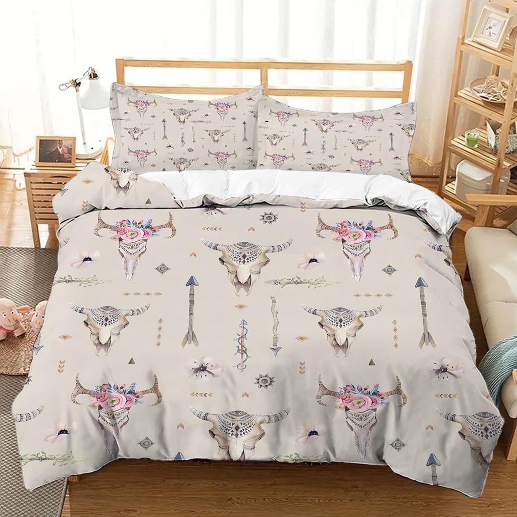 Comforter Bull Head Bone Flower Pattern 3D Printed Exotic Style Bedding Set Soft Comfortable Polyester
