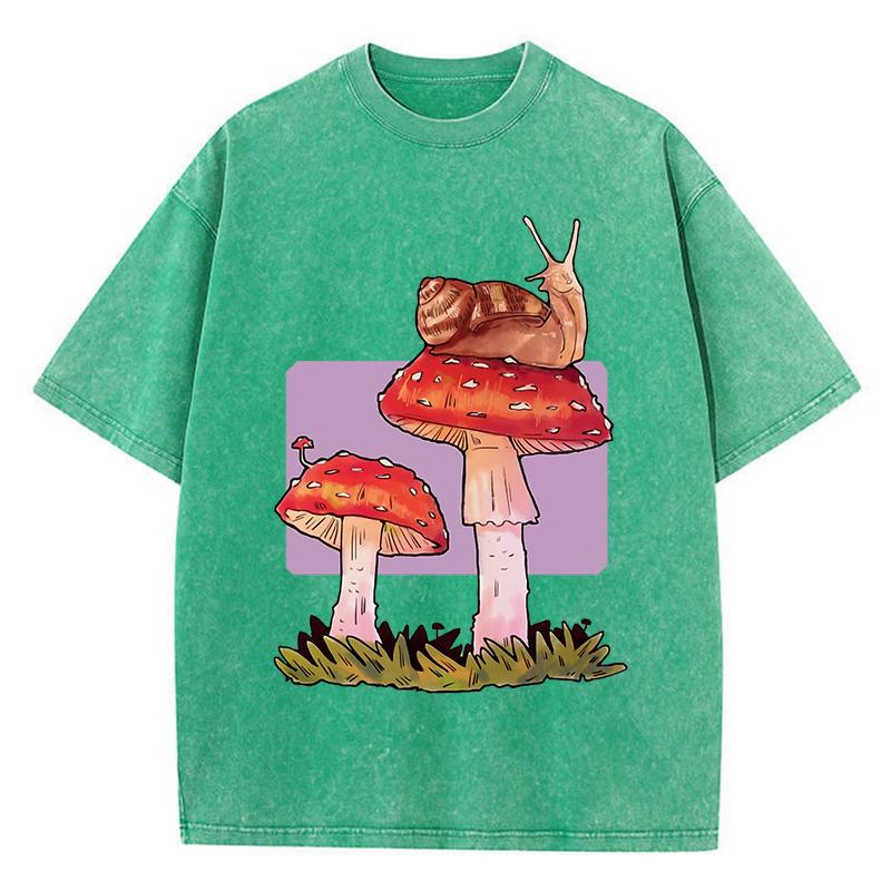 Snail Mushroom Creative Printed Womens Washed T Shirts Cotton Hip Hop T-Shirt Casual Y2K Soft Sportswear Loose Clothes