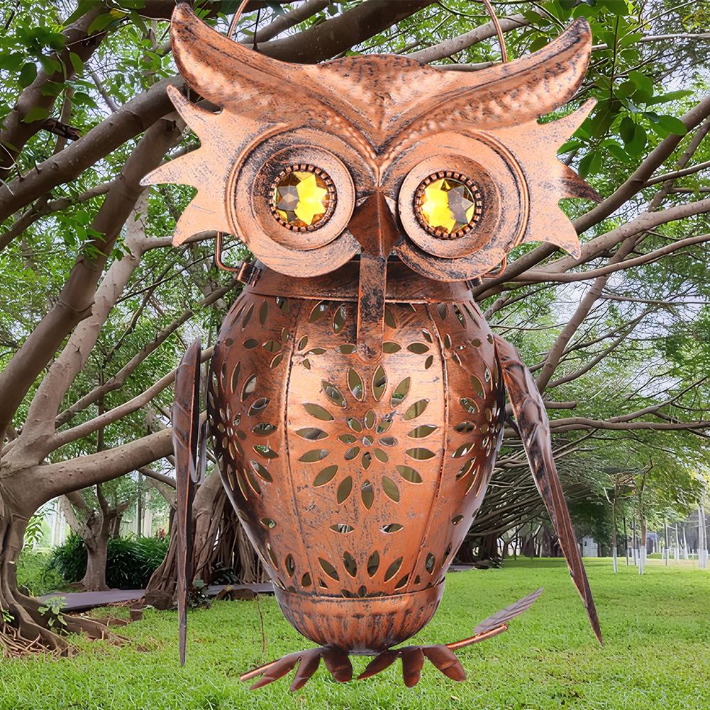Solar Powered Owl Garden Lantern IP65 Waterproof Hanging Owl Lantern Auto On/Off Iron Hollow Out Lantern for Patio Yard Pathway