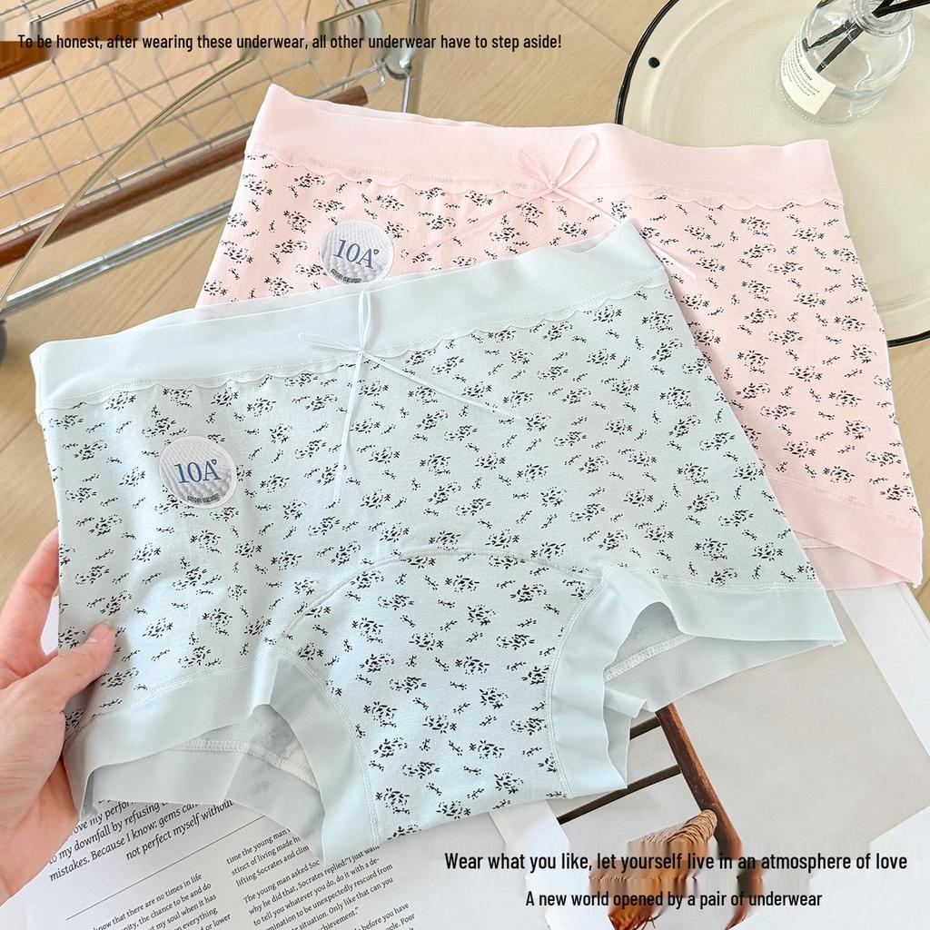 10A Antibacterial Sweet Floral Cotton Girls' Mid-Waist Boxer Briefs - Comfortable & Breathable