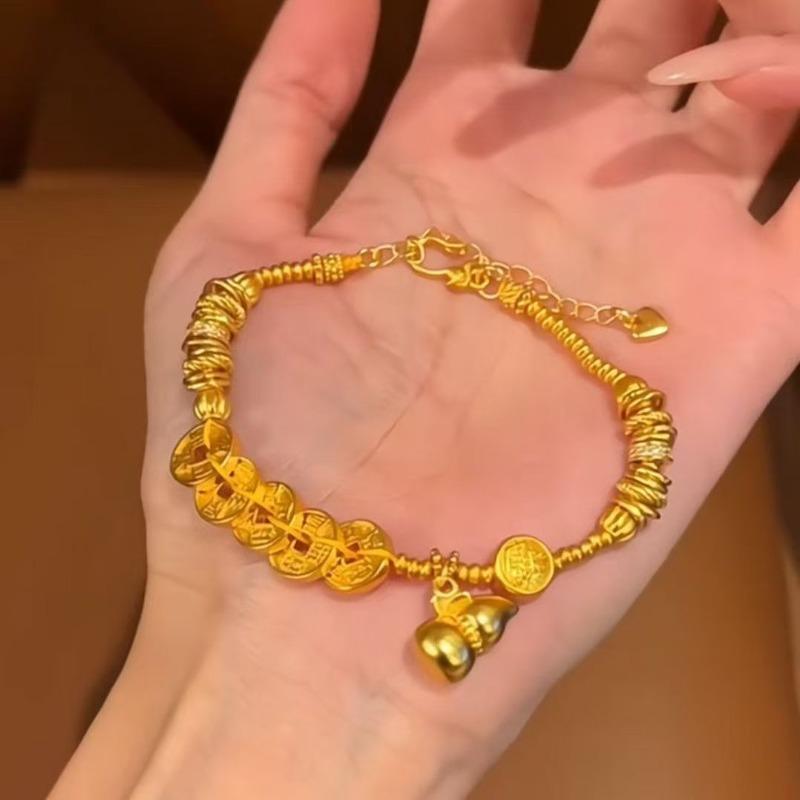 Golden Five Emperors Ancient Method Gourd Twist Bracelet Chinoiserieretroniche Style Girlfriend Bracelet
