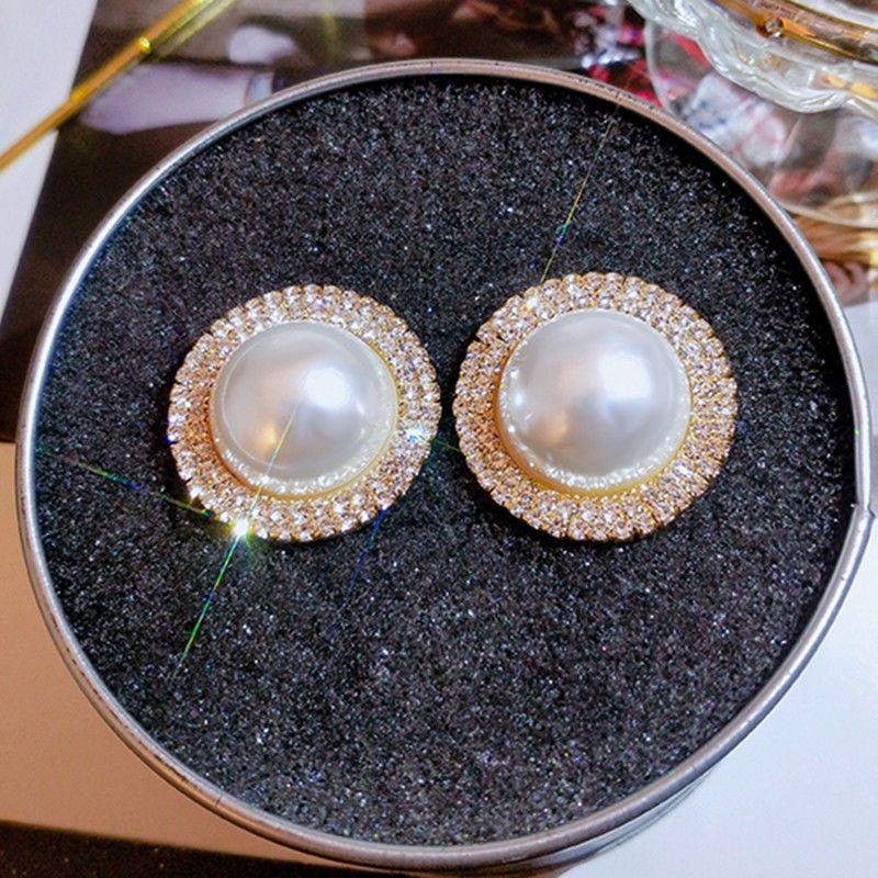 Elegant Korean-Style Pearl Stud Earrings - Versatile Geometric Circle Design