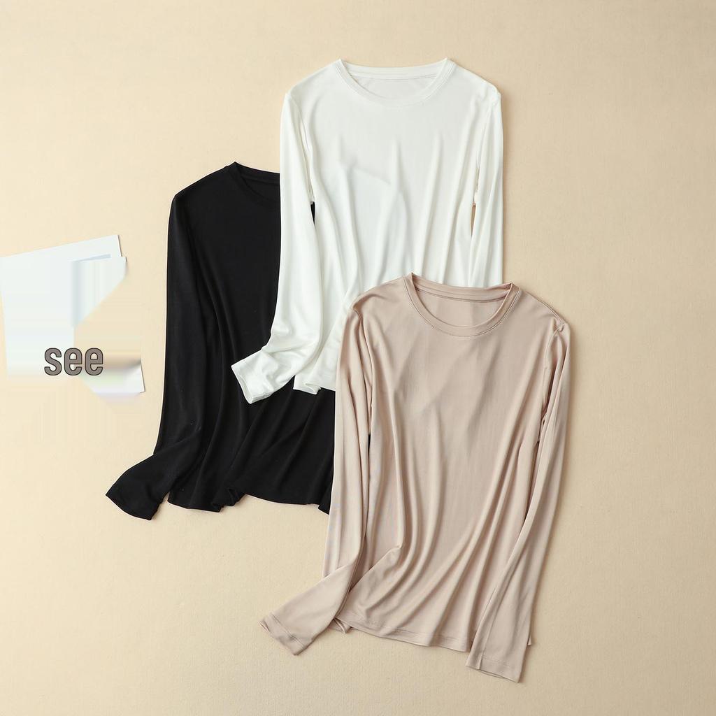This Women's Heavyweight Mulberry Silk Long Sleeve Top is designed to provide warmth and comfort during the cooler autumn and winter months. Crafted from luxurious silk, it features a solid pattern and a small round neck for a timeless and versatile look. The long sleeves offer additional coverage, making it an ideal choice for layering or wearing on its own. This top combines elegance and practicality, perfect for staying stylish and cozy in the colder seasons.