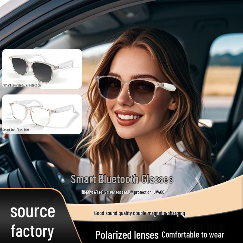 Smart Bluetooth Polarized Sunglasses with UV Protection, Anti-Blue Light, Music & Call Features, Transparent, Replaceable Lenses