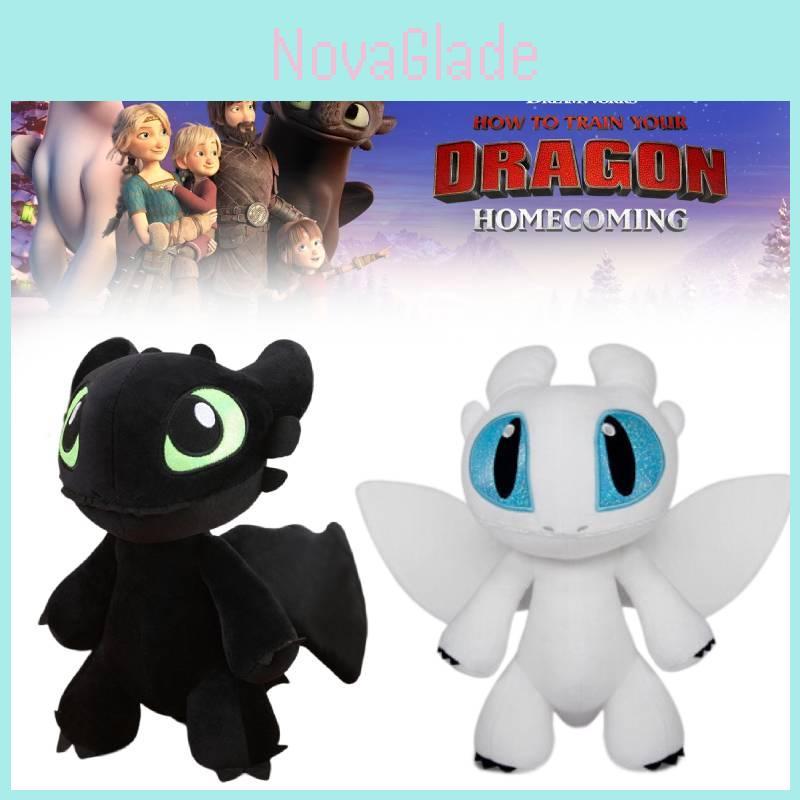 Dynamic Night Fury And Light Fury Plush Toys For Dragon Lovers Black And White Dragon Dolls