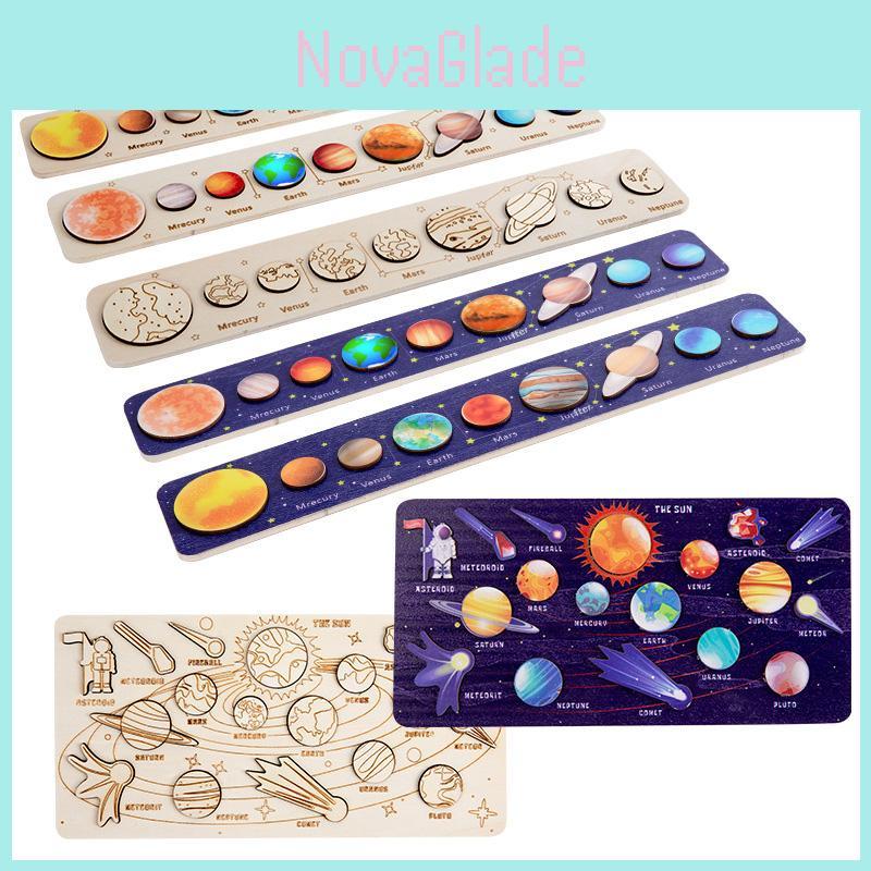 Wooden Space Planet Puzzles Montessori Toys For Kids Educational Jigsaw Tray For Science Learning