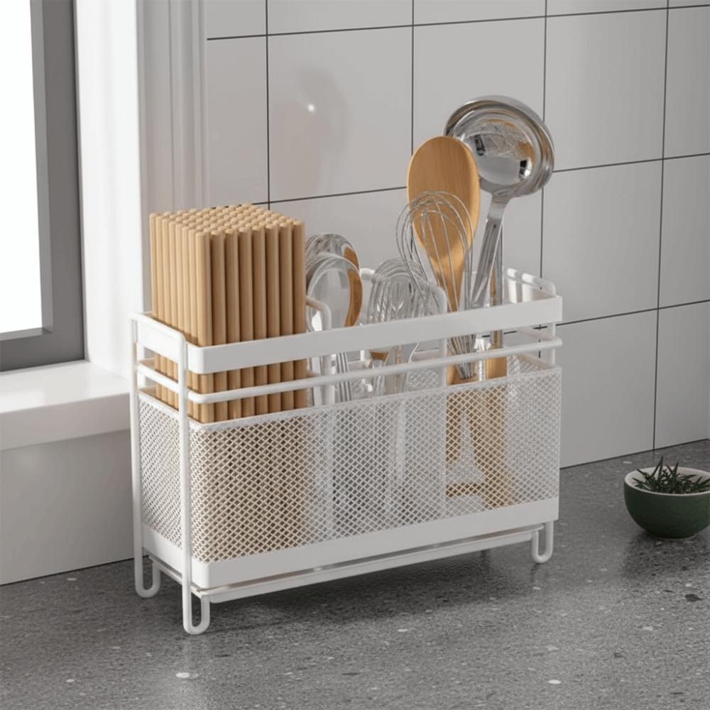 Wall-Mounted Cutlery Draining Rack Rust Proof Chopstick Cage Spoon Drainer Basket Utensil Storage