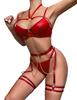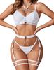 Avidlove Lingerie Set for Women Sexy Strappy 5 Piece Lingerie Garter with Underwire Push Up Bra and Chain