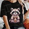 Trash Raccoon Latte Printed Womens T-Shirt Harajuku Cartoon Animal T Shirt Fashion Causal Women's Clothing Summer Raccoon Tops