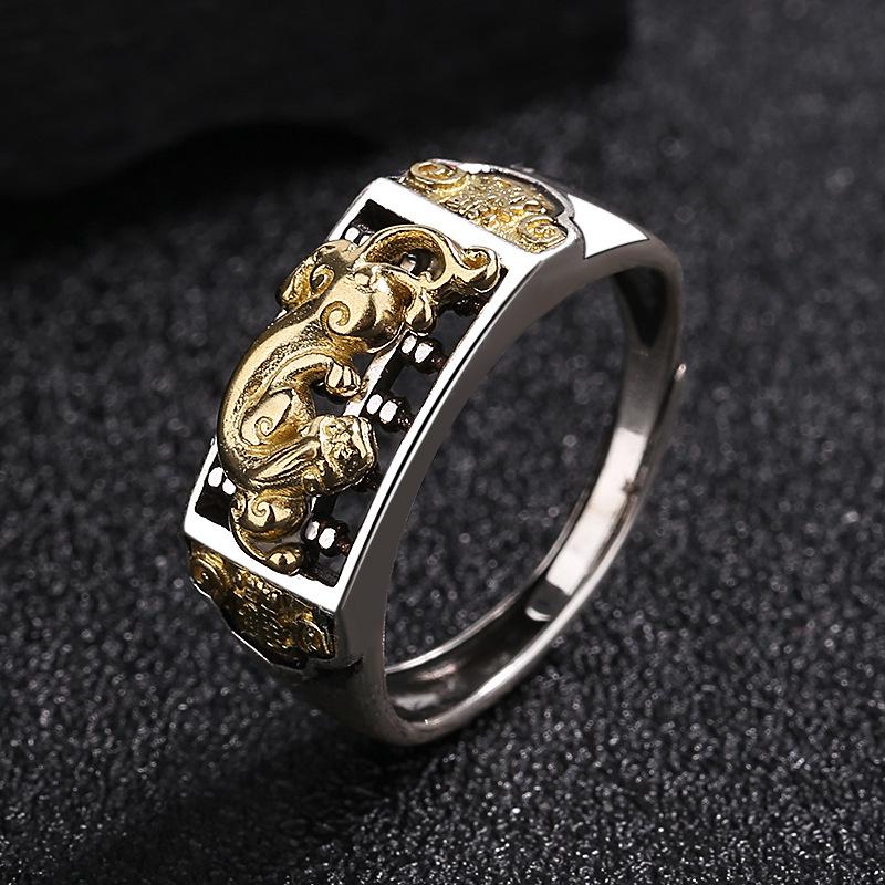 Retro Pixiu 999 Sterling Silver Open Ring: Stylish Wealth & Luck Charm for Men and Women