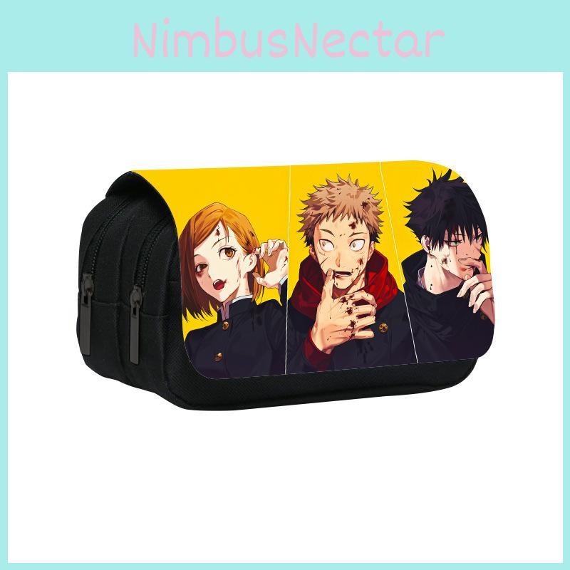 Jujutsu Kaisen Pattern Double Layer Flip Cover Stationery Storage Pencil Bag For Middle School Students