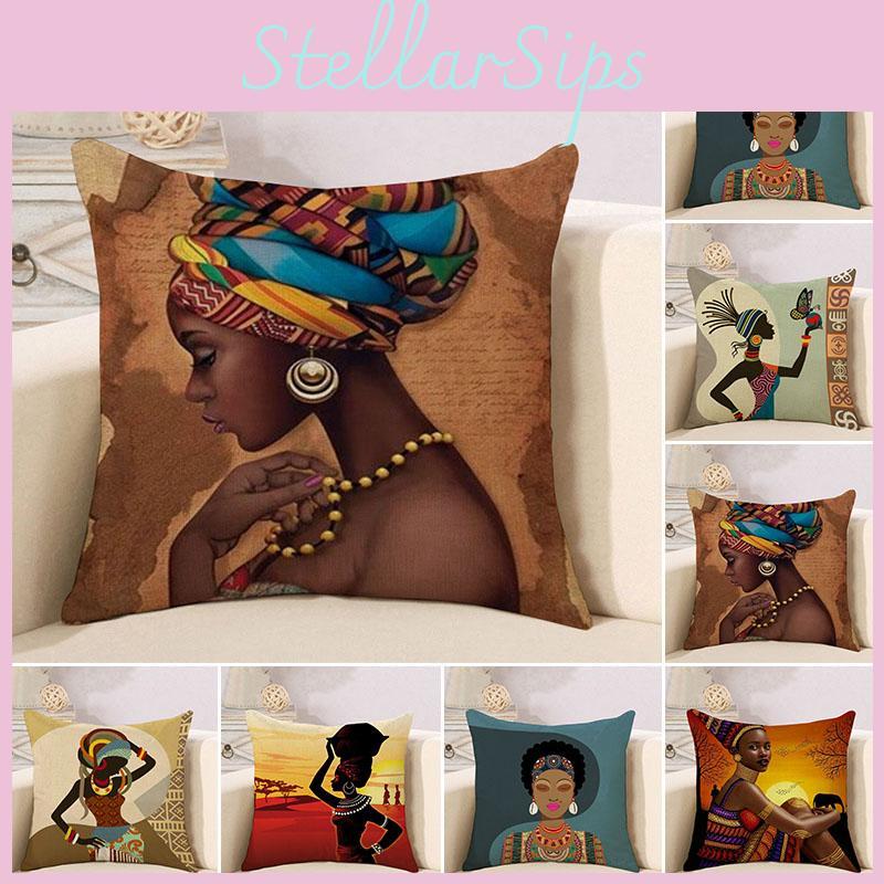 Decorative Tribal African Women Lifestyle Cushion Cover Stylish Linen Pillow Case For Unique Home Decor