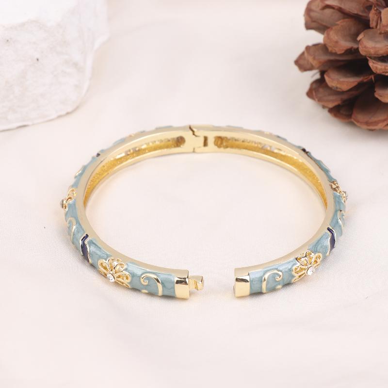 Vintage Enamel Flower Bracelet Ethnic Style Cloisonne Bangle Elegant Luxury Exquisite Bangles For Women Jewelry