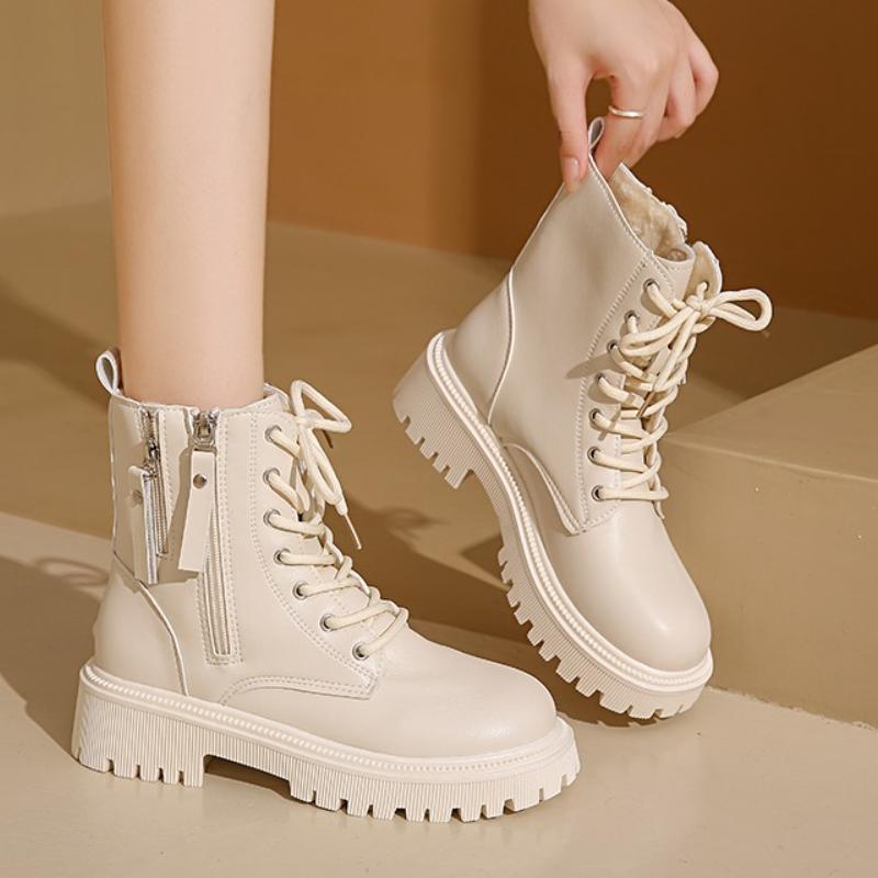 Women Platform Boots Short Plush Solid Color Lace Up Side Zipper Ankle Boots Winter Women Shoes 2026 Large Size 42 Ladies' Shoes