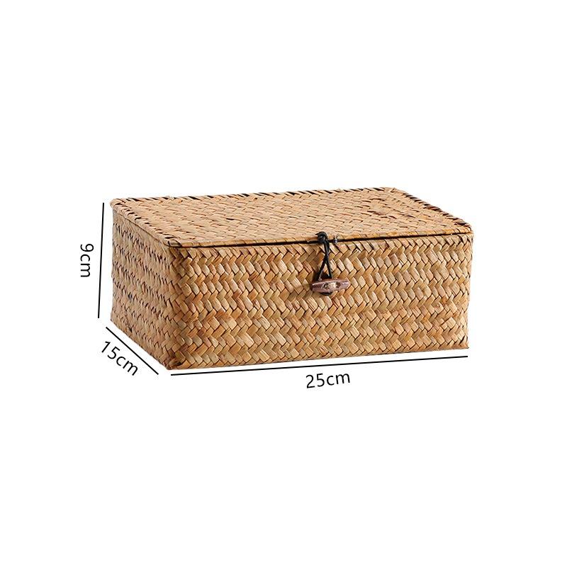 Handmade Wicker Woven Storage Box Rattan Storage Finishing Basket with Lid Sundry Bath Cosmetic Towel Container Laundry Basket