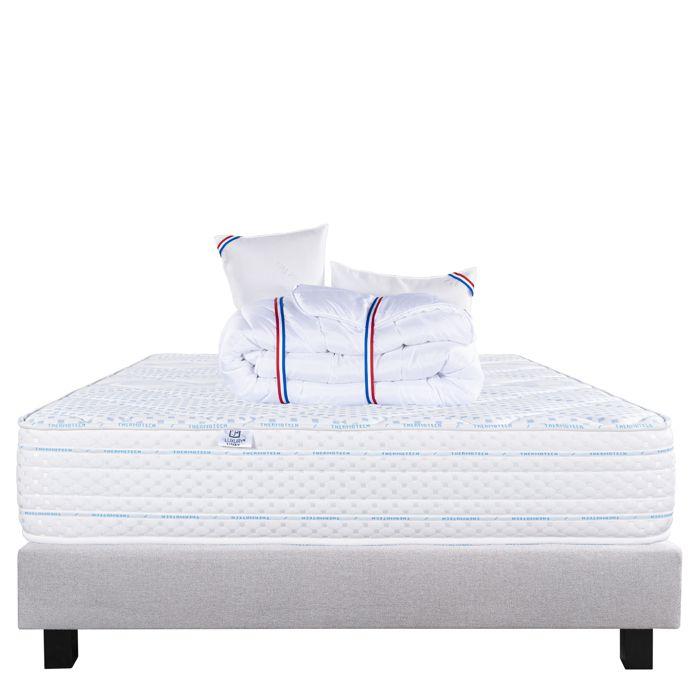 Mattress Set 140x190 Cm, Thermotec, 24 Cm, Firm, Summer/winter Side + Grey Bed Base Ep20cm + 2 Pillows + Duvet