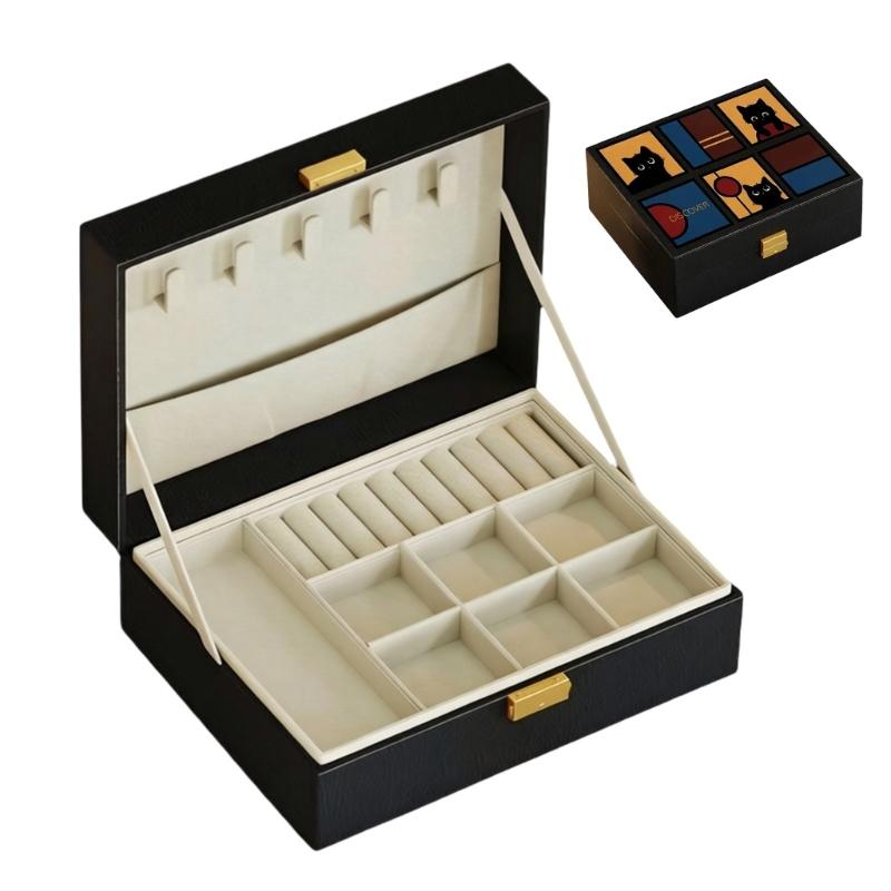 Vintage Art Design : This PU leather jewelry box features a retro balloon cat pattern, combining artistic charm with durability to solve traditional cheap materials issues. Perfect for vintage home decor or as a stylish gift.