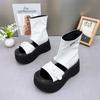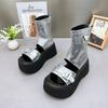 Women Thick-soled Sandals Metal Decoration Heel Wrap Rear Sandals Summer Party Medium Heel Roman Women Shoes Sandalias De Mujer