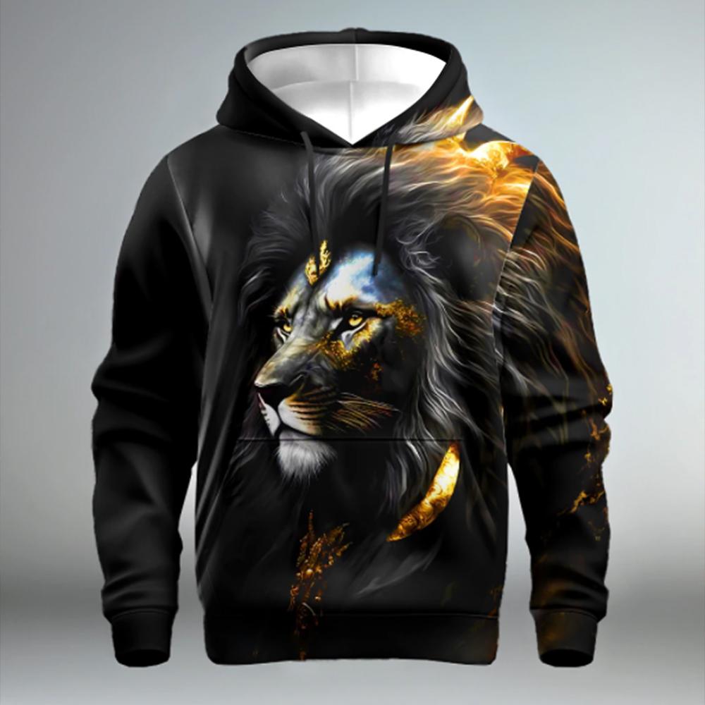 Fashion Men's Hoodie Sweatshirt Animal Lion 3D Print Round Neck Long Sleeve Hoodie Casual Sweatshirt Oversized Men's Clothing