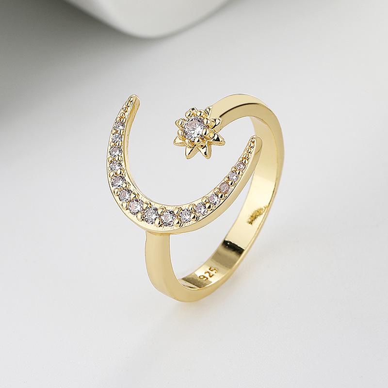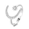Crescent Moon & Star Open Ring: Elegant European and American Fashion for Women