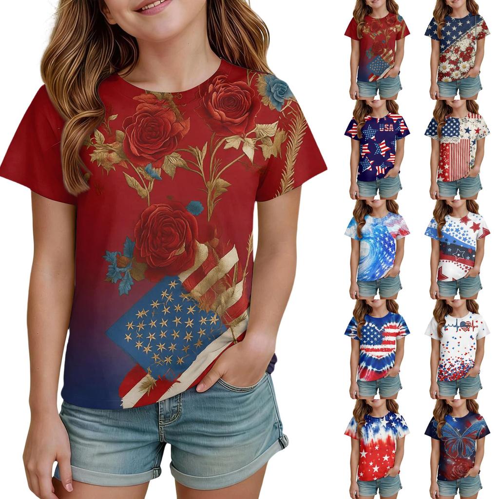 Kids Independence Day Print Round Neck Short Sleeve Casual T-shirt
