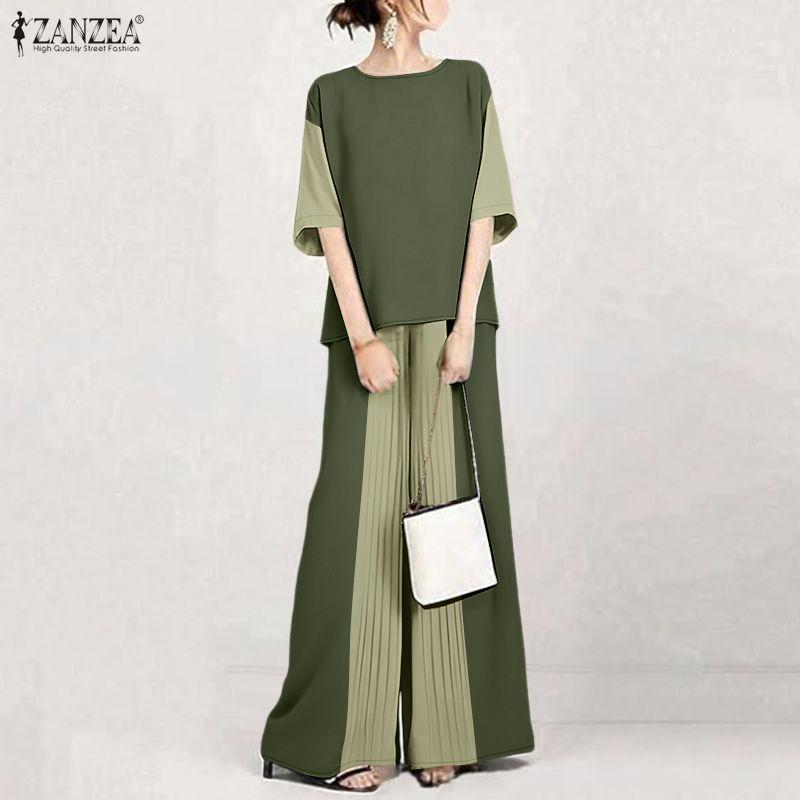ZANZEA Women Half Sleeve Blouse and Loose Wide Leg Pants Casual Two Piece Suit Sets