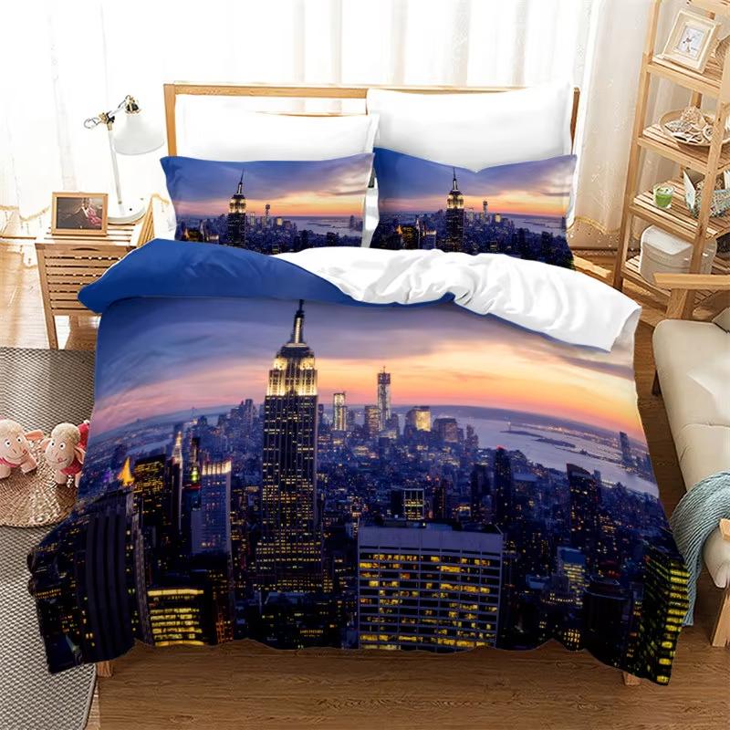 Comforter Cityscape Europe Building Bedding Set Paris City Night 3D Print Comforter Full King For Kids Adults Decor