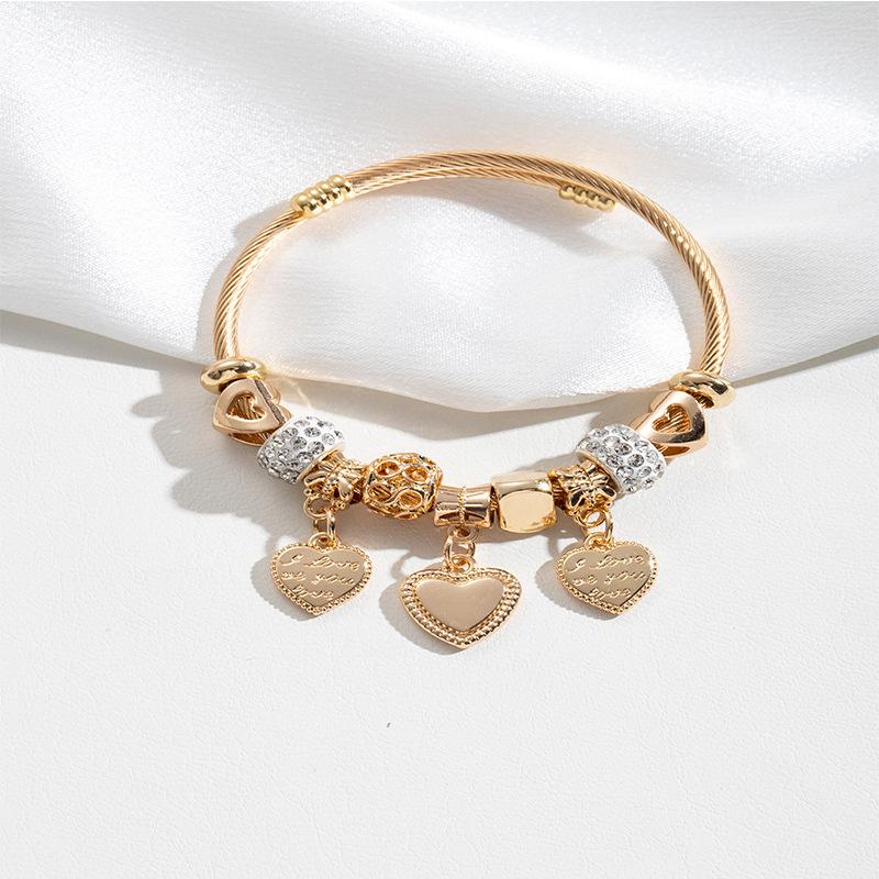 Handmade Beaded Bracelet With Heart Alloy Pendant And Stainless Steel Diamond Ball Beads