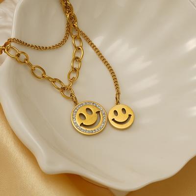 Elegant Double Layer Smiley Face Necklace For Women In Stylish Korean Design Available In Silver And Gold Elegant Titanium Steel Material