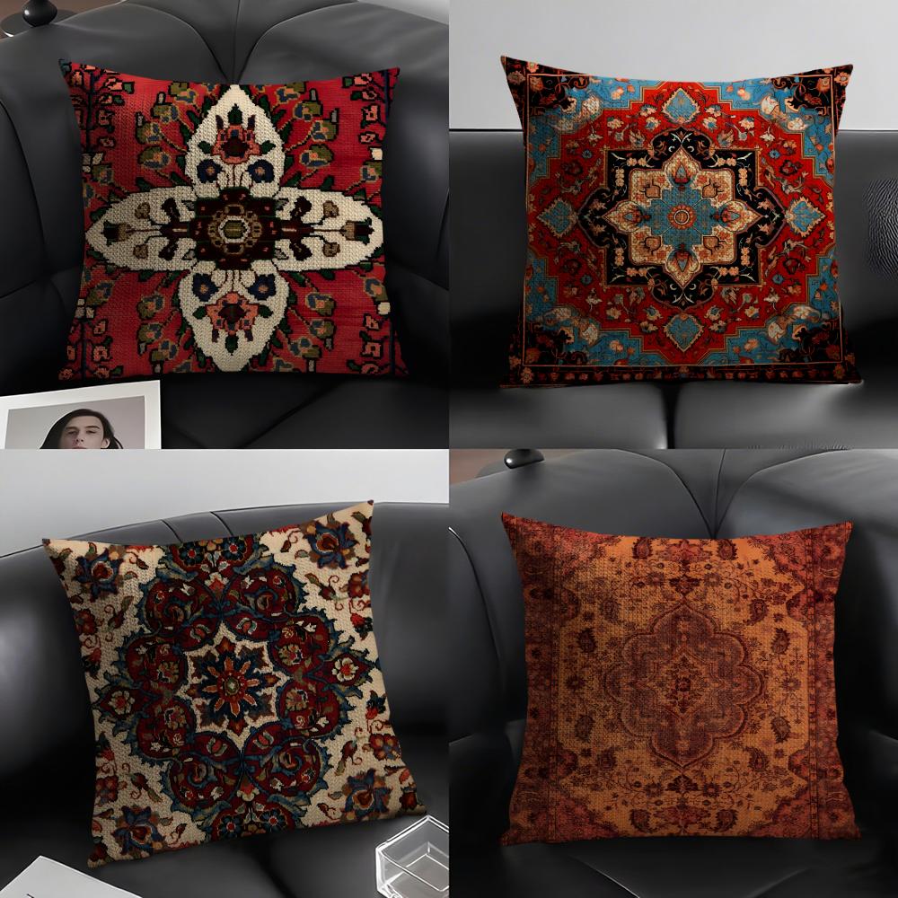 Persian Rug Pattern Classical Cushion Cover Natural Linen Organic Fabric DoubleSided Printing Sofa Home Decor Gift Pillow Case