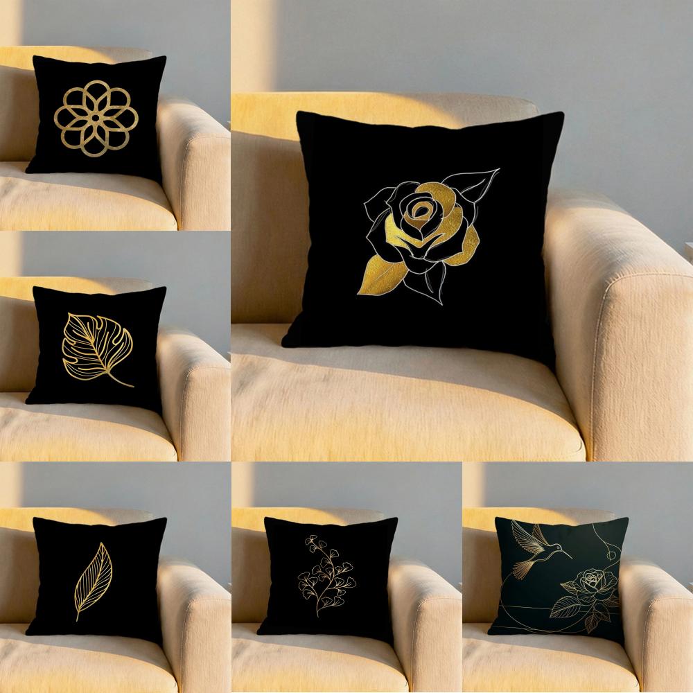 Golden Leaf Pattern Cushion Cover Soft Reversible Durable Pillow Cover MultiScene Use for Home Car Daily Comfort
