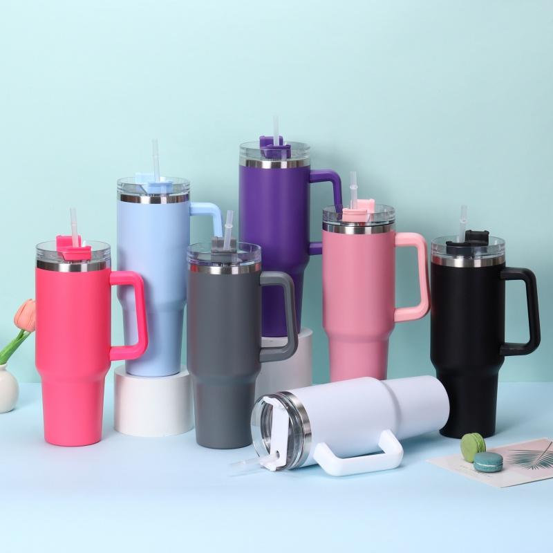 Simple Solid Color Large Capacity Double-layer Vacuum Stainless Steel Thermos Cup with Straw Coffee Cup Outdoor Car Water Cup
