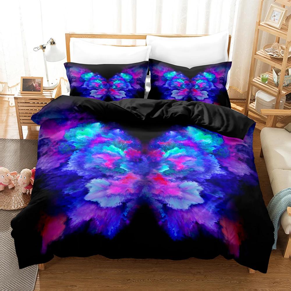 Insect Dream Buterfly Flowers Soft Duvet Cover Sets Twin Sized Dimensions,Black Background Artistic Stary Sky Winter Beding for Bed Cover Set