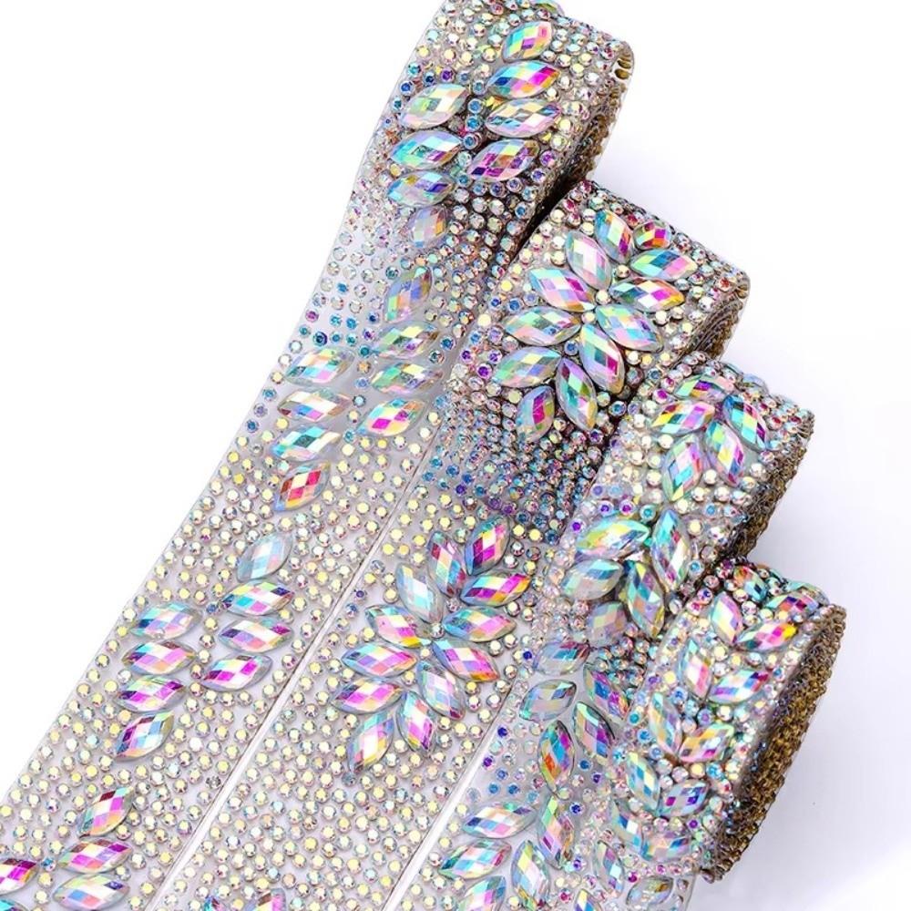 1Yard/90cm Self-Adhesive Rhinestone Trim Multi-color Crystal DIY Rhinestone Trimming Tape Iron On AB Color Crystal Tape