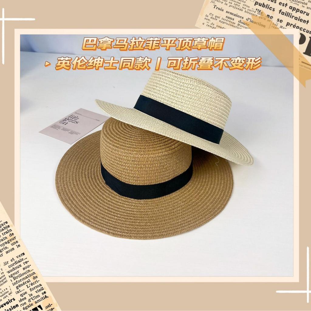Panama Lafite Flat Top Straw Hat Summer Tourism British Simple Shade Sun Hat Beach Eaves Straw