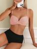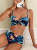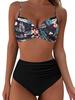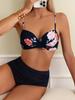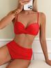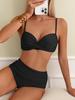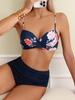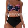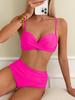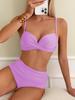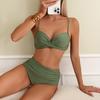 New Multi-color Printing Split Solid Color Gathering Bikini High Waist Explosion Swimsuit