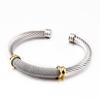 Unisex Titanium Steel C-Shaped Cable Rope Bracelet with Geometric Lines