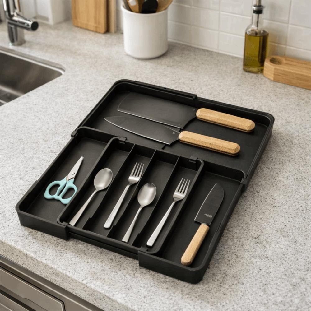 Adjustable Silverware Drawer Organizer 6 Grids Cutlery Separation Trays Fork Spoon